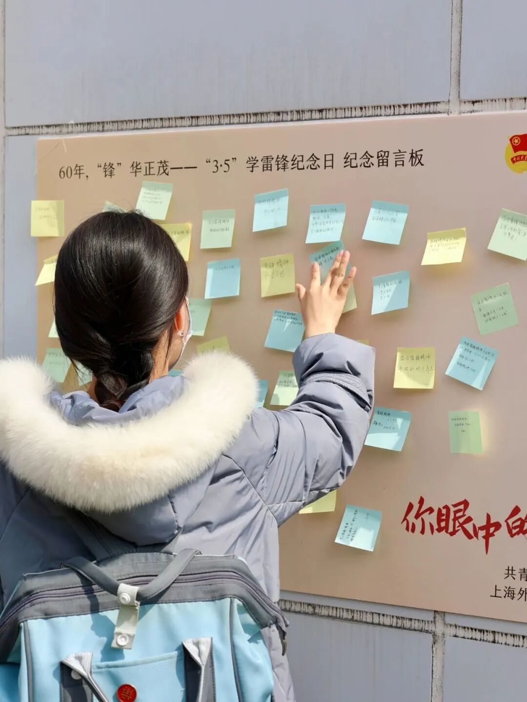 在“3·5”学雷锋纪念日留言板上,同学们积极留言