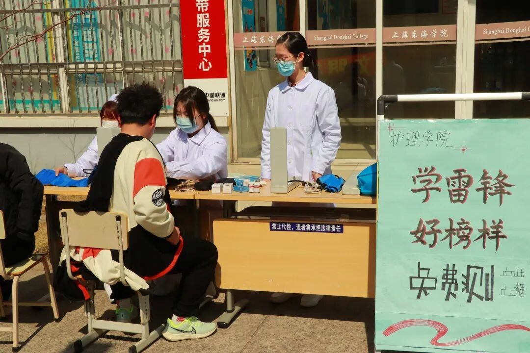 东海学院护理学院志愿者们为师生员工免费测血糖、量血压