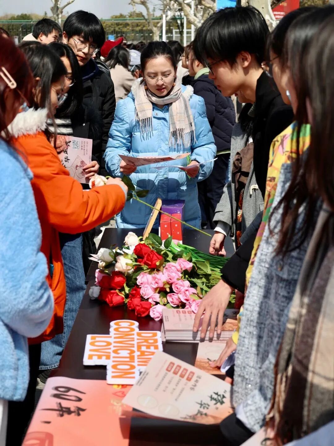 复旦大学邯郸校区北区食堂南侧,咨询答疑、公益便民、知识科普等各类志愿服务让初春的校园洋溢着融融暖意。