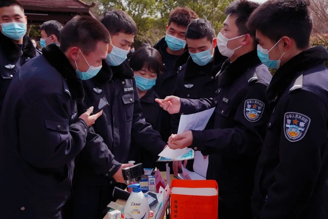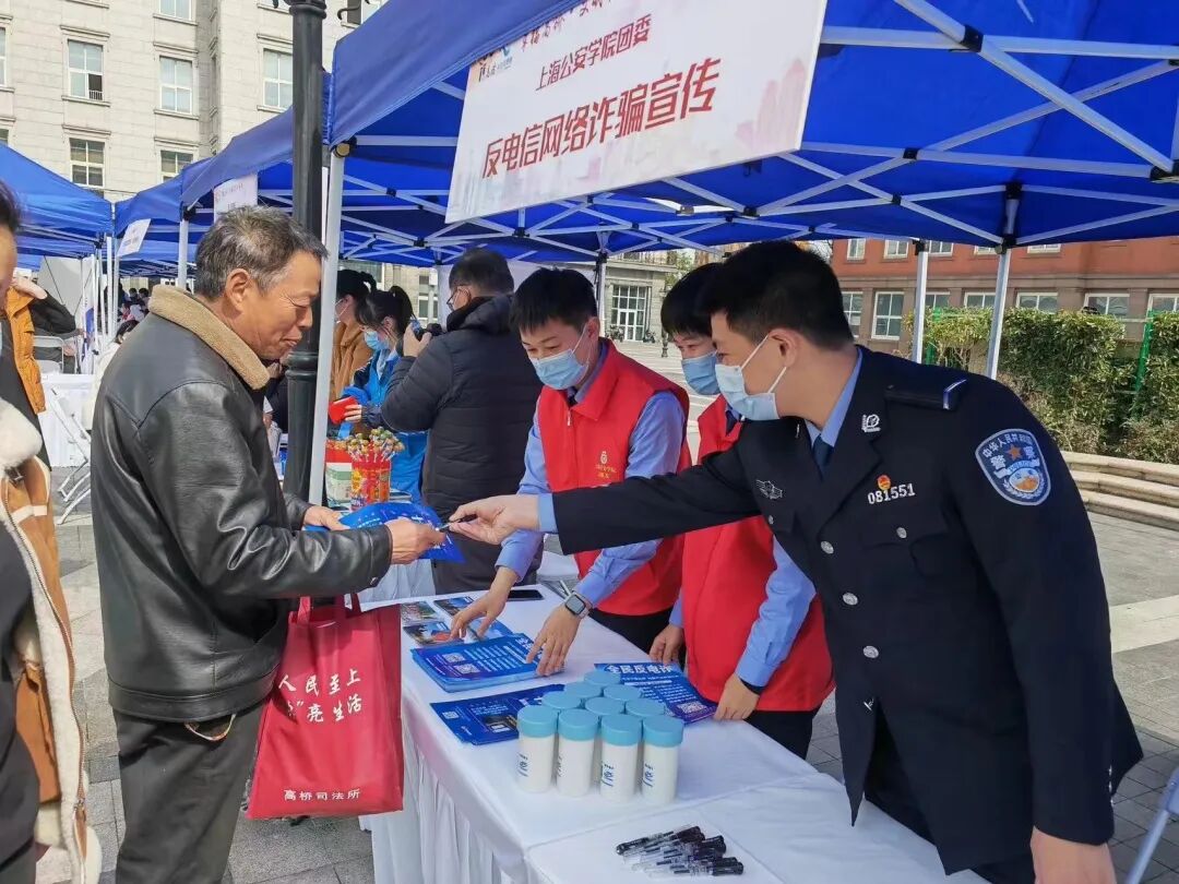 学警在浦东新区高桥镇参加学雷锋主题活动,开展防范电信网络诈骗宣传