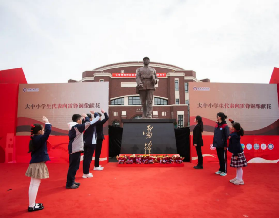 大中小学生代表向雷锋铜像献花