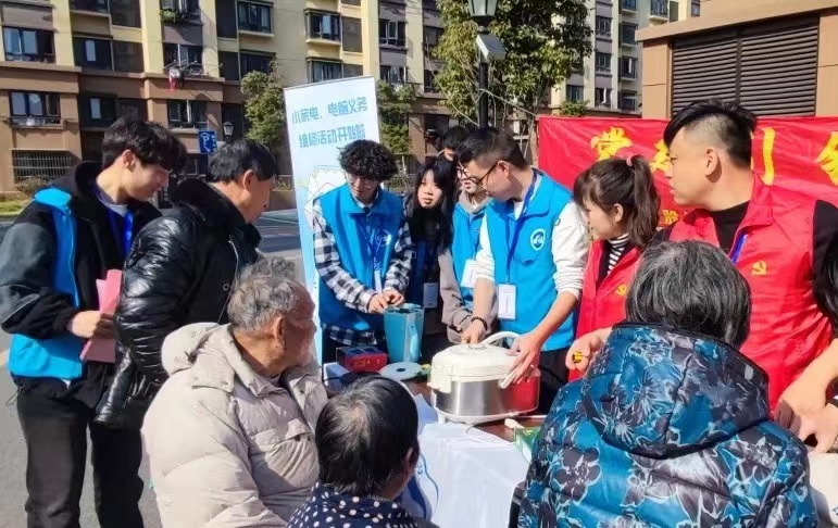 学生发挥“专业+”为小区居民提供维修电器服务