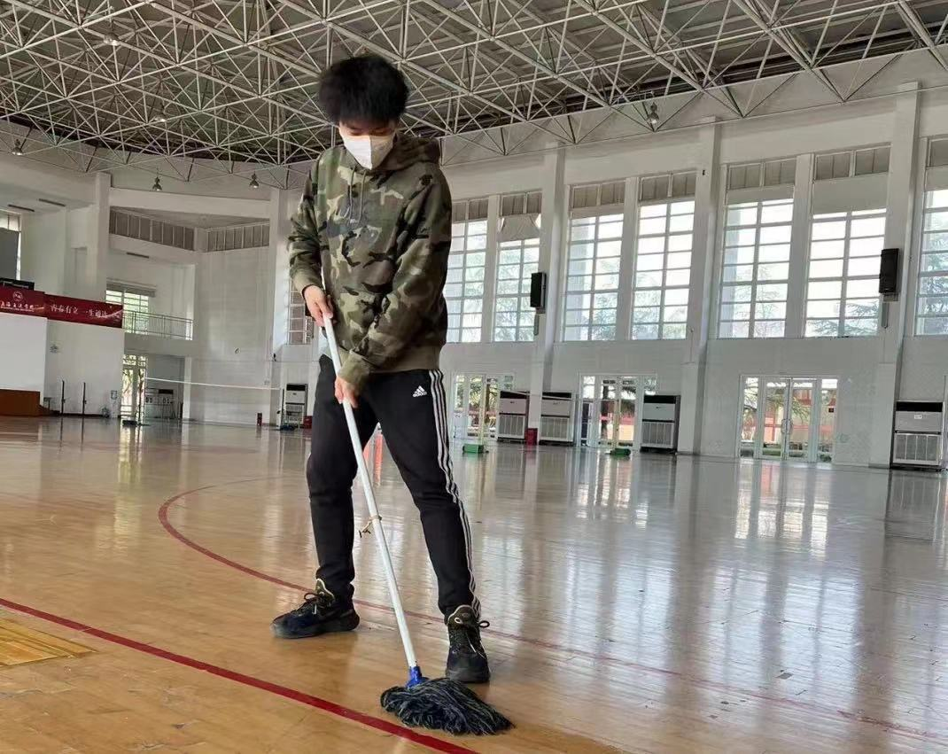 学子打扫体育馆