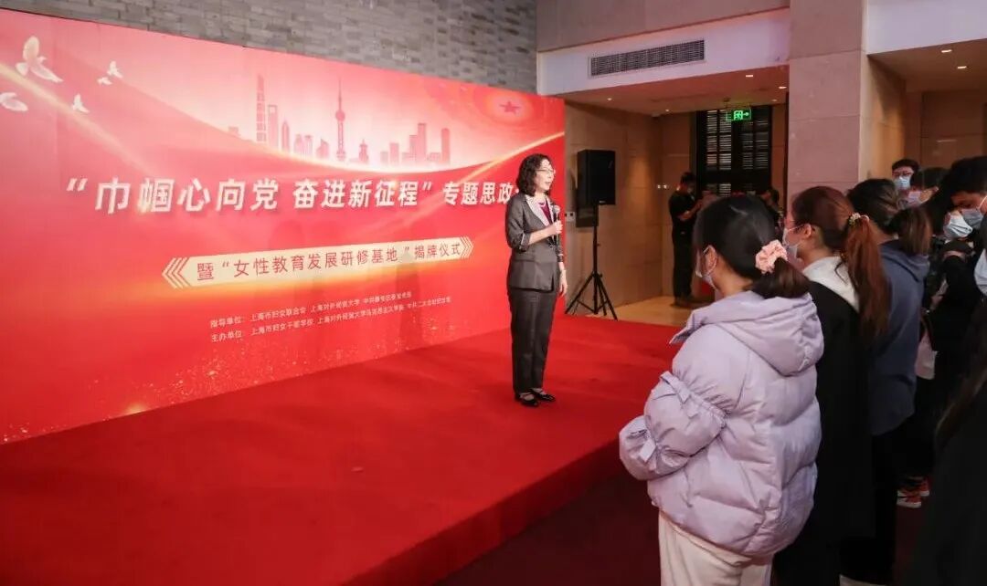 活动现场,上海对外经贸大学马克思主义学院与上海妇女干部学校共建女性教育发展研修基地揭牌,今后将聚合中共二大会址纪念馆、上经贸大马克思主义学院、市妇干校三家力量,以习近平新时代中国特色社会主义思想为指导,不断创新党课形式,做优做强巾帼思政品牌。