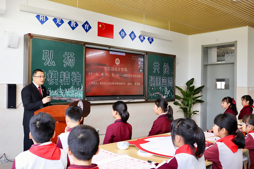 活动中,松江区人民法院车墩法庭法官虞增鑫,作为上海市劳模代表,以《干一行,爱一行,专一行——我的法官成长道路》进行主题授课,结合自己的切身经历,讲述了自己在工作中学习践行劳模精神的体验,在工作中如何创造出了属于自己的不平凡。上海对外经贸大学关工委老教师母天学分享了自己对劳动的心得感悟,勉励同学们从小爱劳动,长大做劳模。