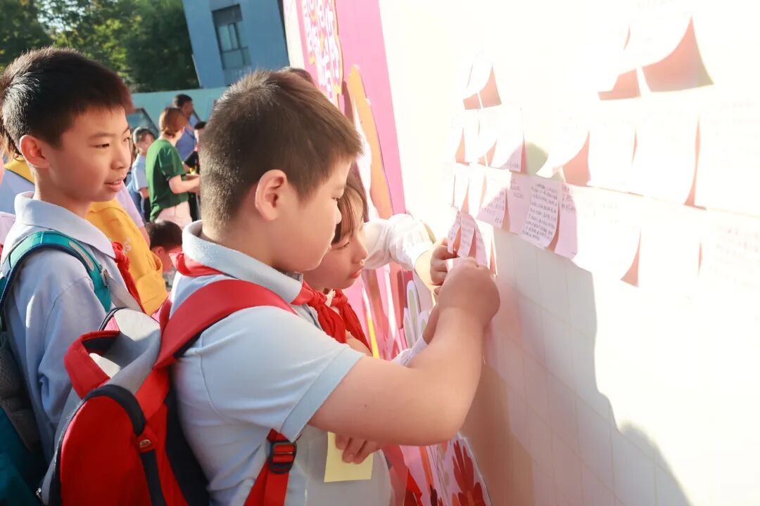 青浦区崧文小学的同学们在展板上留下对老师的节日祝福