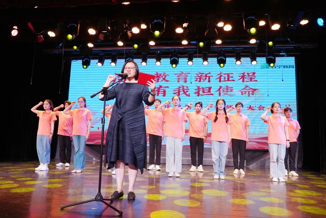 长宁区召开“活力教育新征程,强国有我担使命”庆祝第39个教师节大会,向先进教师代表颁奖,教师代表、校(园)长代表进行交流发言,正高级教师、特级教师带领新教师代表宣誓,表达了他们奉献教育事业的决心和信心。