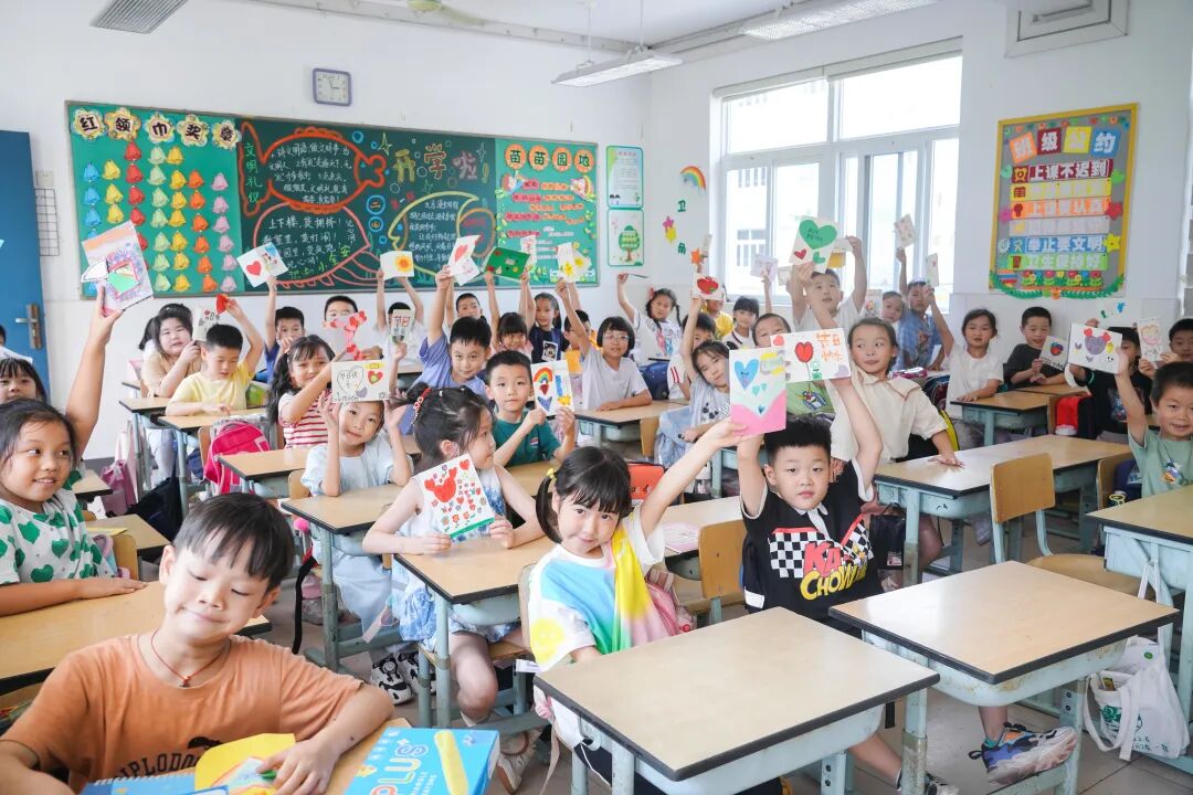 金山区朱泾第二小学的同学以“吾爱吾师”和“老师,感谢您!”为题,交流分享如何用实际行动爱老师,并为老师们送上精心制作的祝福卡,送上了认真排练的精彩节目。