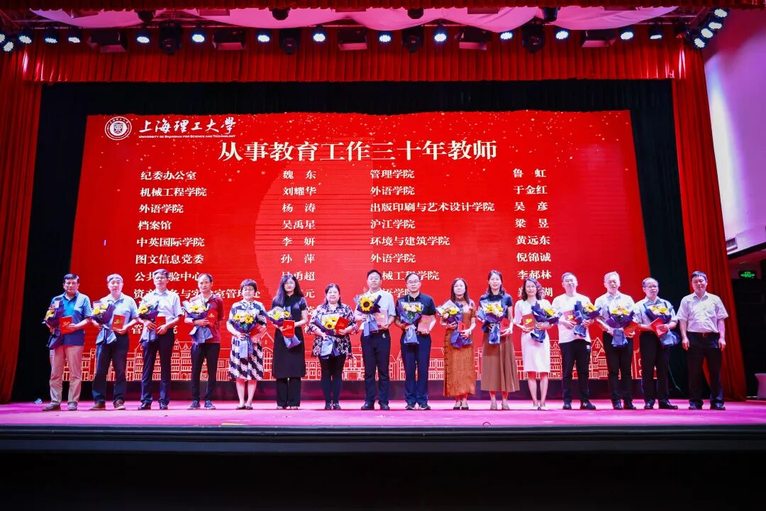 上海电机学院举行庆祝第三十九个教师节暨表彰大会,对教学竞赛获奖、国家自然科学基金项目、上海市科学技术奖等获得者和从教满三十周年教师进行表彰。26名新教师面向国旗庄严宣誓,歌曲表演《校园春秋》、诗歌朗诵《辛勤园丁》等,表达了对老师们的诚挚祝福。