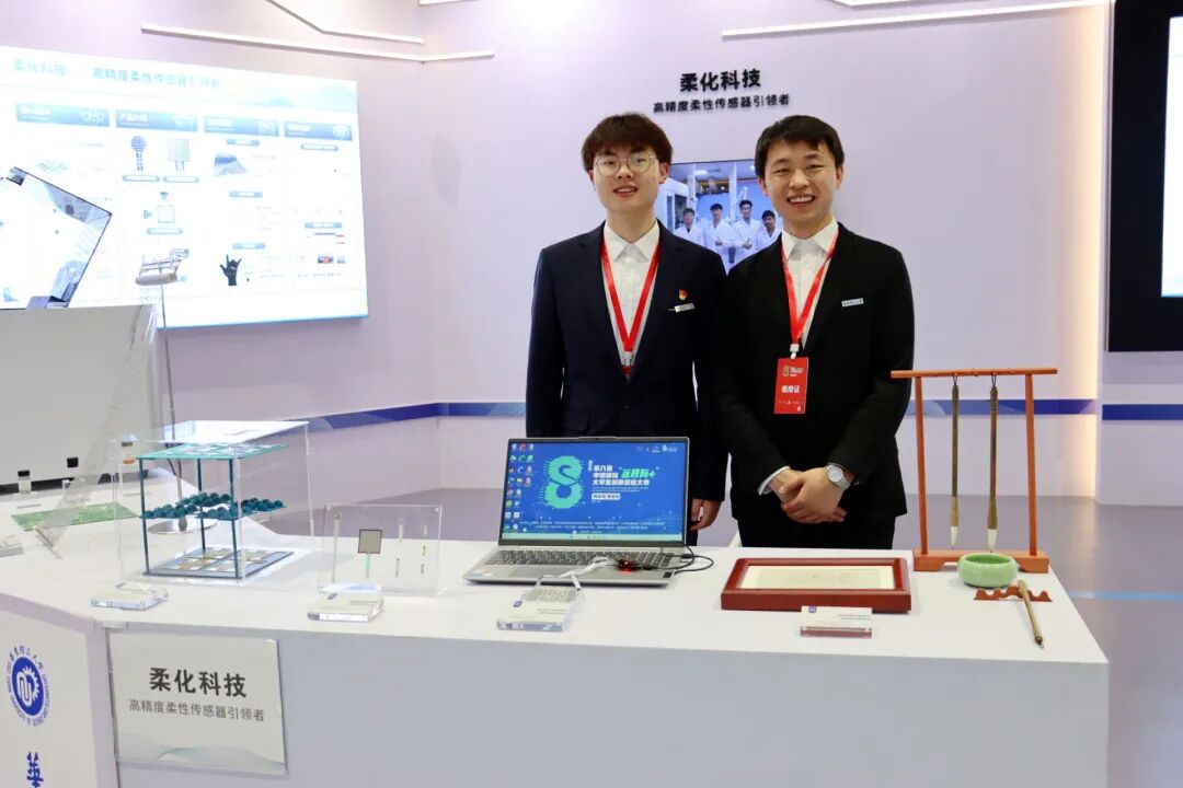 唐桤泽与张震老师(右)在第八届中国国际“互联网+”大学生创新创业大赛成果展现场