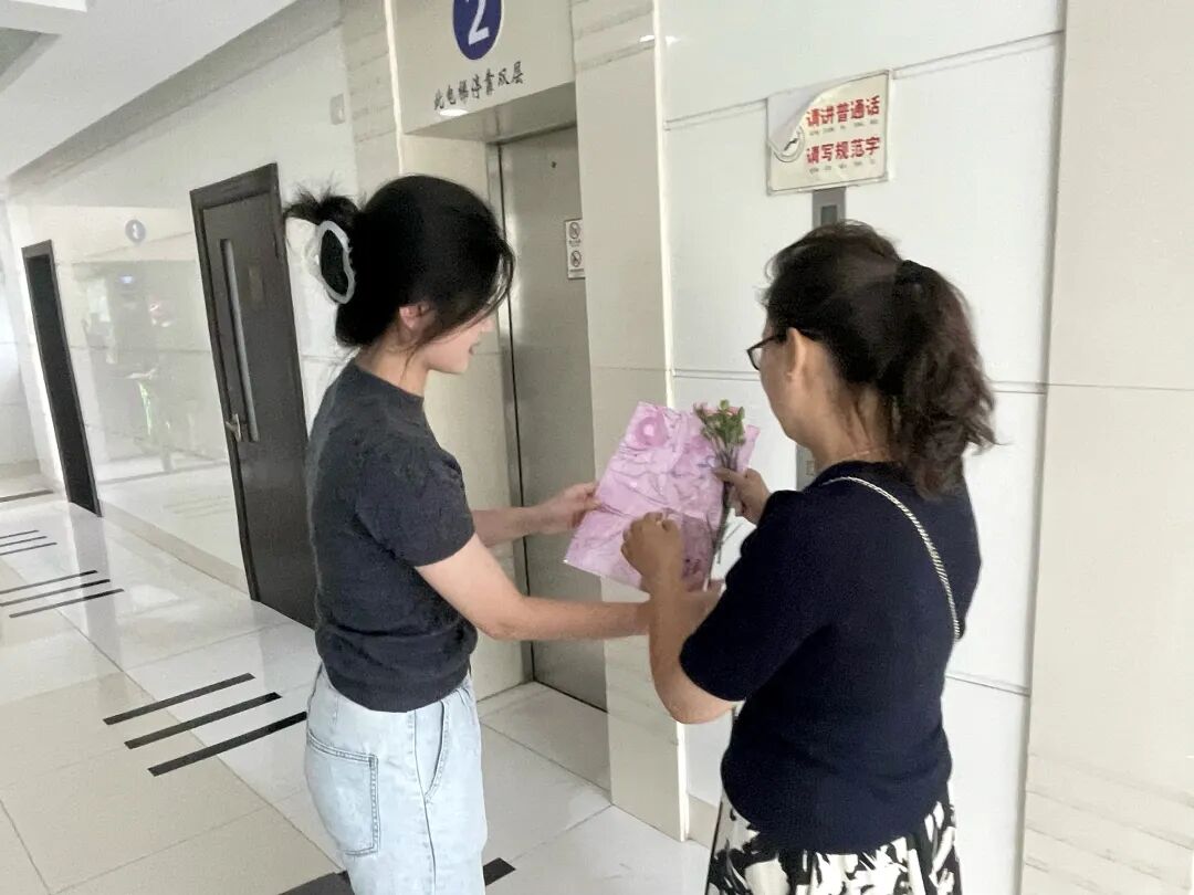 上海工程技术大学同学向老师送上鲜花和贺卡