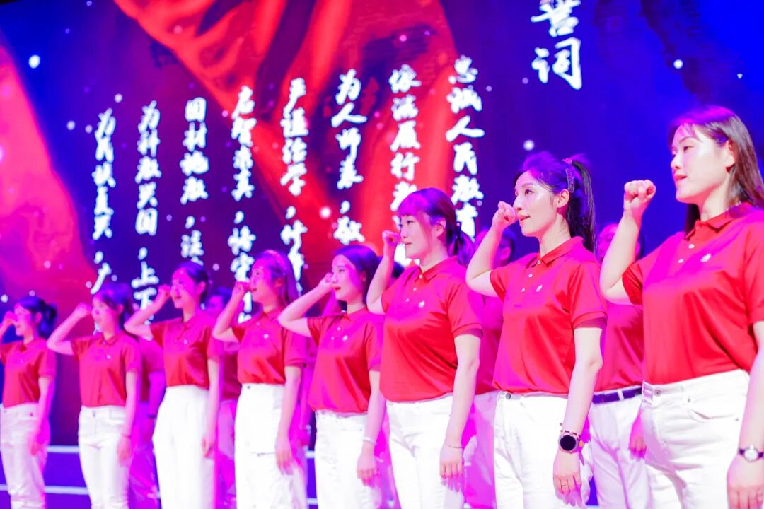 在闵行区庆祝教师节活动现场,557名新教师进行新入职教师宣誓。上海市“十佳青年校长”、闵行区颛桥中学校长李卫军深情讲述了他带领一所公办初中,冲出低谷,跻身全区前列学校的教育使命和责任。微电影《梦田》,讲述了闵行区马桥强恕学校赵丽芸老师扎根乡村学校,默默耕耘,潜心教书育人的心路历程。