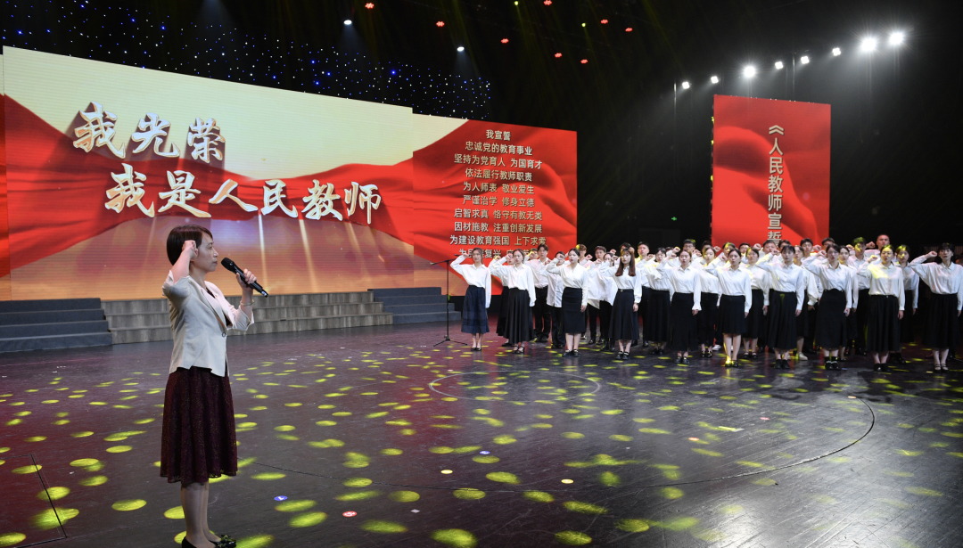 嘉定区以“强师德、践初心,构筑育人新生态”为主题庆祝第39个教师节。活动以歌曲、舞台剧、情景朗诵、人物访谈、新教师宣誓等形式,讲述了一代代嘉定教育人传承发展品质教育的美好初心和磅礴力量。