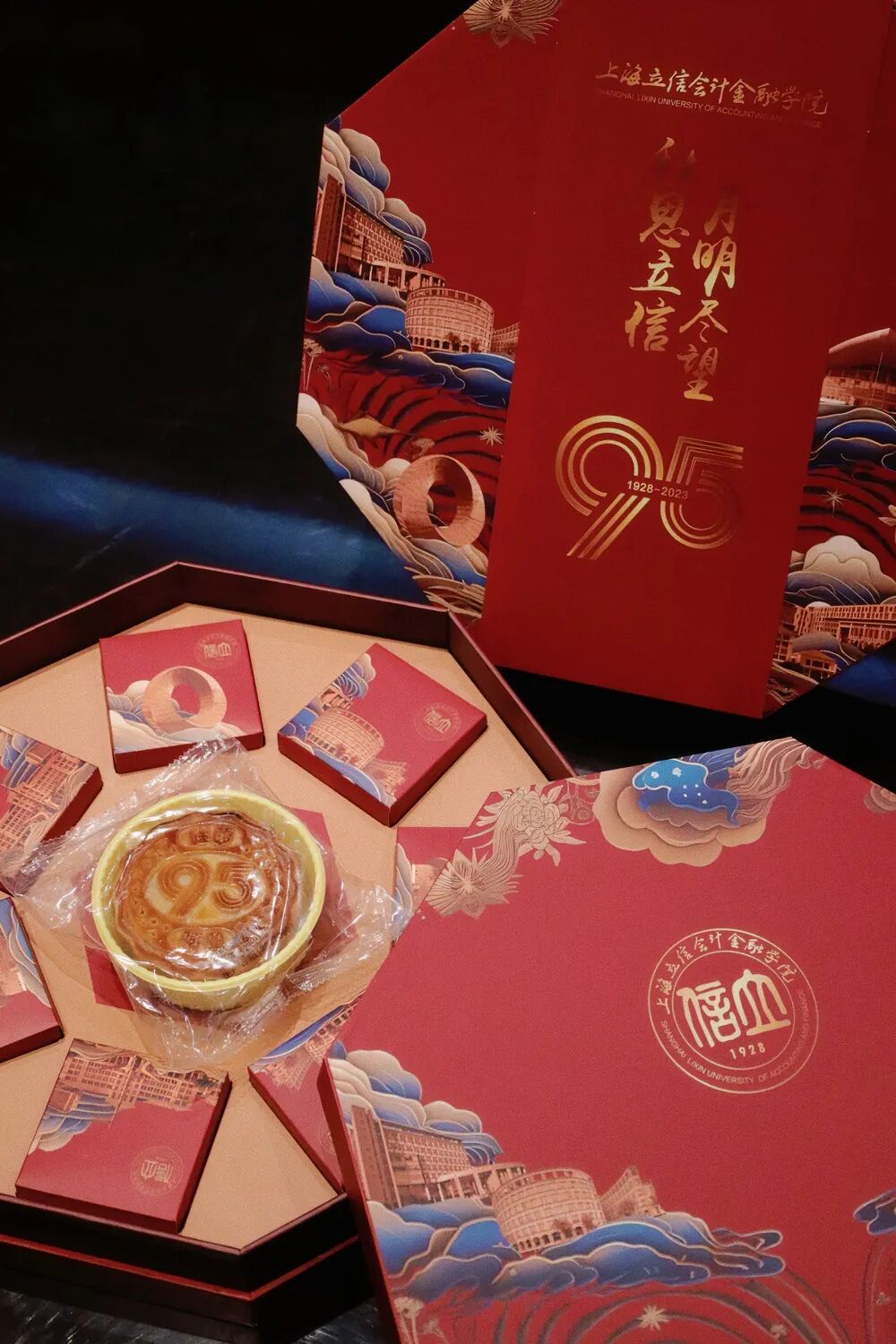 今年,上海立信会计金融学院特色月饼共有桃山皮、广式、苏式三大类,栗蓉扁桃仁、芋泥奇亚籽、南乳鲜肉等十种口味,更有马卡龙色系三只精品装、星空赏月系列周年纪念装两种礼盒套装供挑选。这次的立信月饼,除了带有校徽、诚信柱、金融广场等立信元素纹样,还推出了庆祝建校95周年特别款,更具特殊意义。