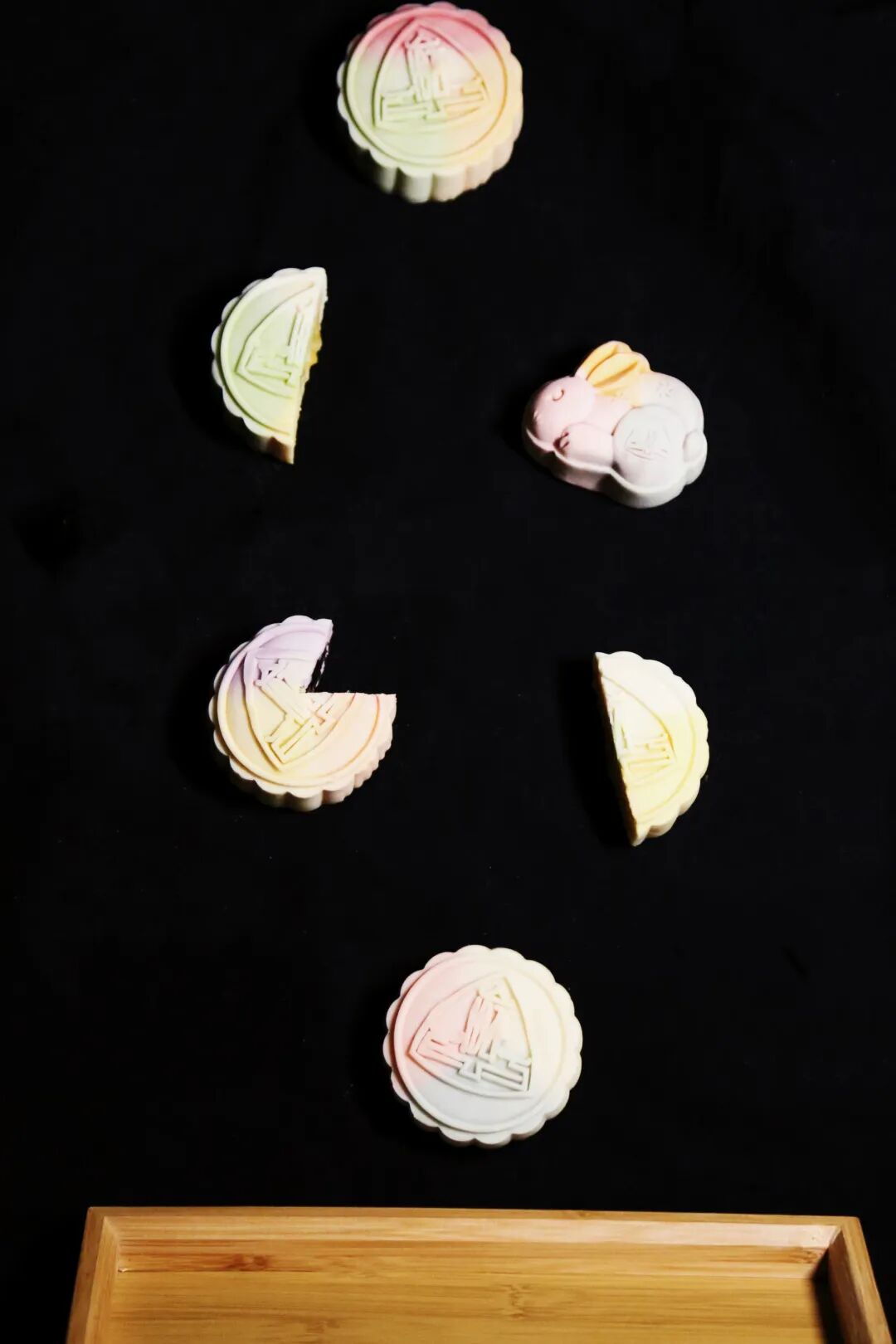 上海应用技术大学今年推出新品彩虹月饼,向每一位师生校友送去学校的佳节祝福。独具匠心的彩虹饼皮,油润香甜,奶香四溢。法式乳酪、牛油果核桃、雪耳玫瑰、榛仁巧克力……7种口味兼顾传统与创新,每一口都是上应臻选。