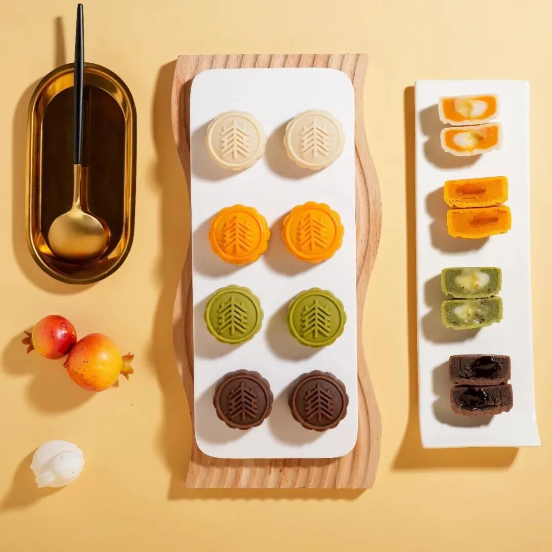 今年上海开放大学推出鲜肉月饼和蜜桃铁观音雪媚娘流心、双色生椰拿铁雪媚娘流心、双色牛油果核桃雪媚娘流心等8款雪媚娘流心口味月饼,时尚又美味。