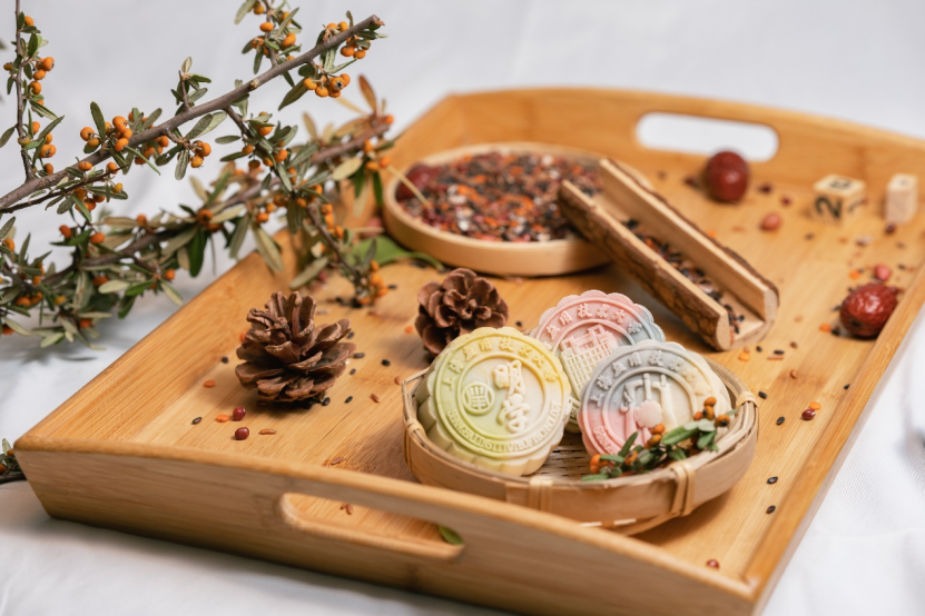 上海海事大学今年推出8种口味的桃山皮月饼,内涵丰富、外表低调,口感细腻、绵沙松软,颜值与口感并存,精致诱人、回味悠长。