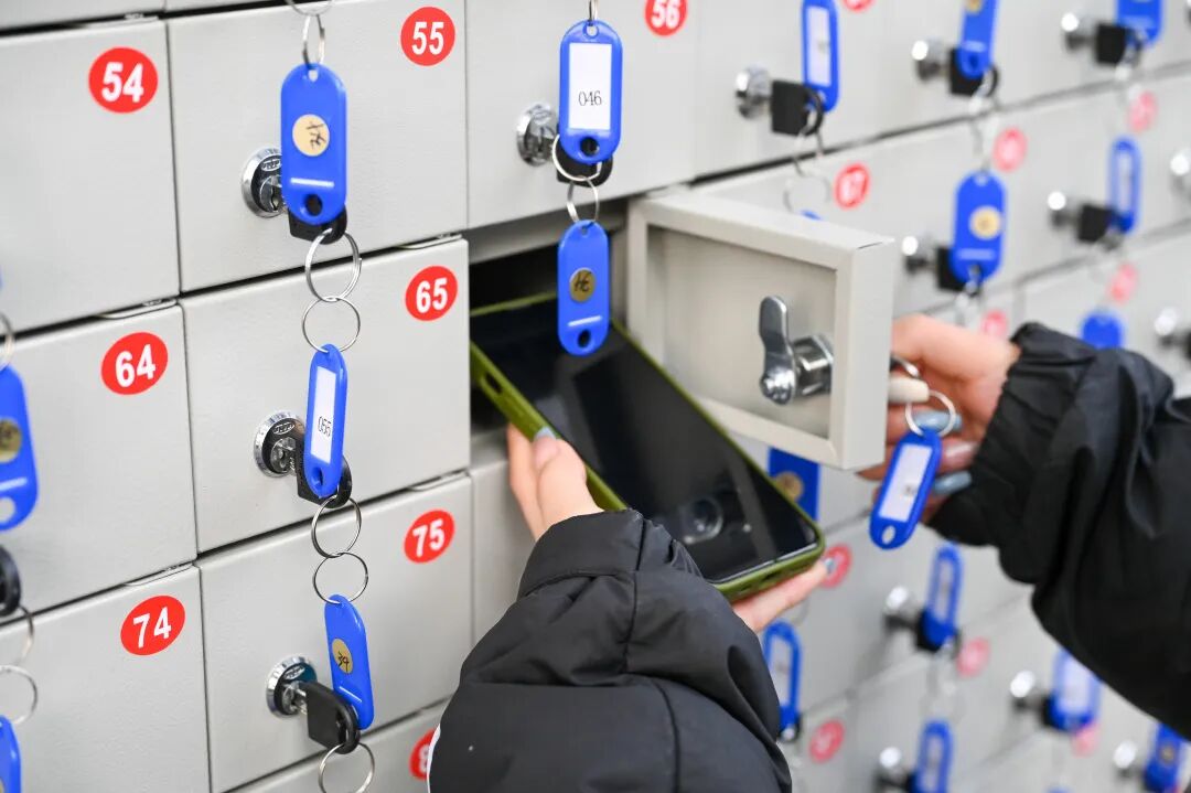 为保证考试顺利进行,上海工程技术大学专门购置了考试要求相关的安检设备,从仪器设备上确保研考安全、诚信考试。学校专门配备手机存储保管箱,从方便考生快速“检、存、取”的角度,重新优化流程设计,每个点位均配备1对1服务志愿者,极大缩短了考生进场时间和排队时间。