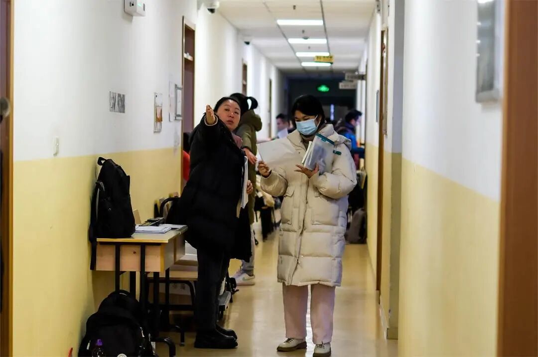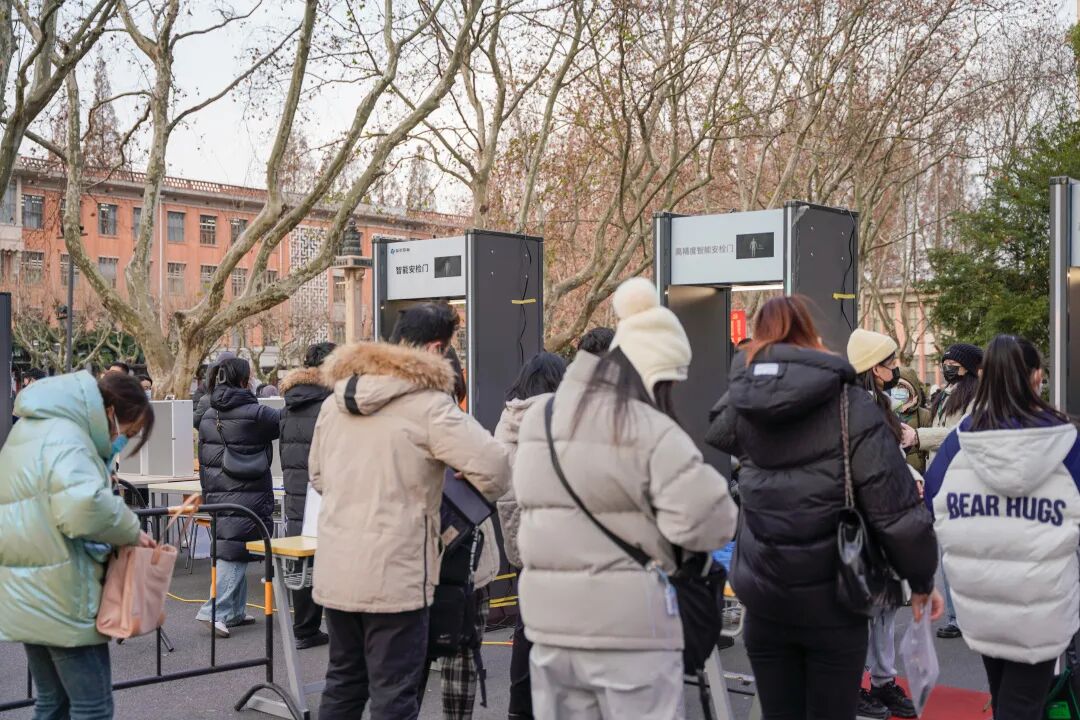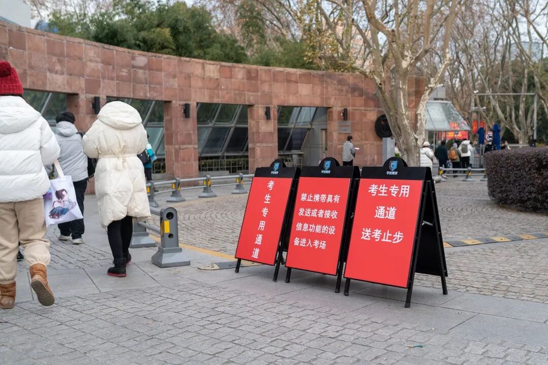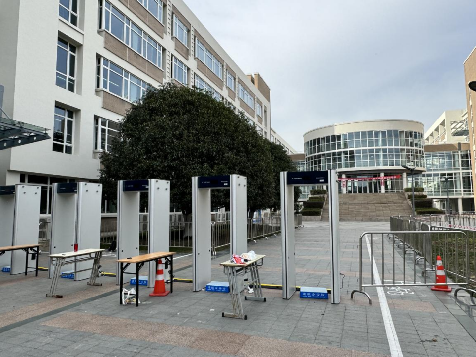 同济大学校园里设立清晰的指引标识,科学规划研考路线,工作人员实时在岗,用心用情护航研考。今年研考入场新增智能安检门检查环节,在工作人员细致入微的指引下,现场秩序井然、高效运转。教室内外有详细的考场分布表,包含考场楼、考场代码、考场地点、教室等具体信息,便于考生迅速了解情况,顺畅地做好考前入场准备。