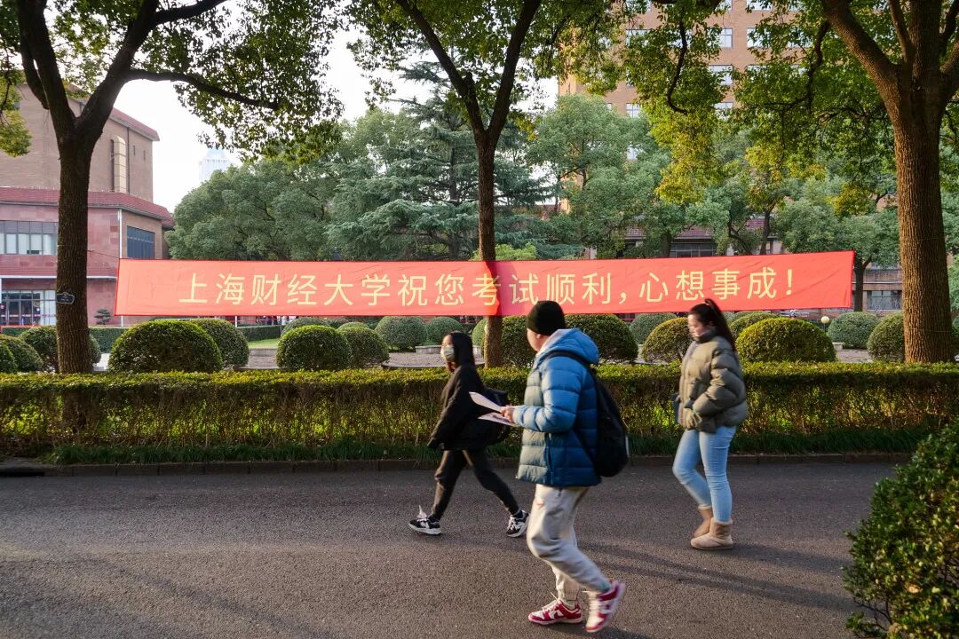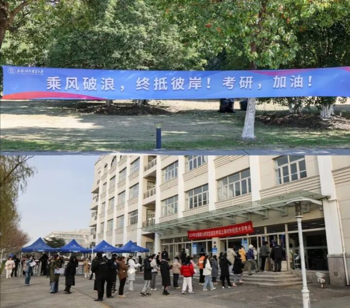上海对外经贸大学深化“研考考生服务”小程序应用场景,为考生提供“考场、手机存放格口查询”“考点通知和重要提醒浏览查询”等功能和服务。拍摄考生进场引导视频,沿途设置导引,细致详实,缓解考生紧张情绪。营造考试氛围,横幅、海报给考生加油助力。