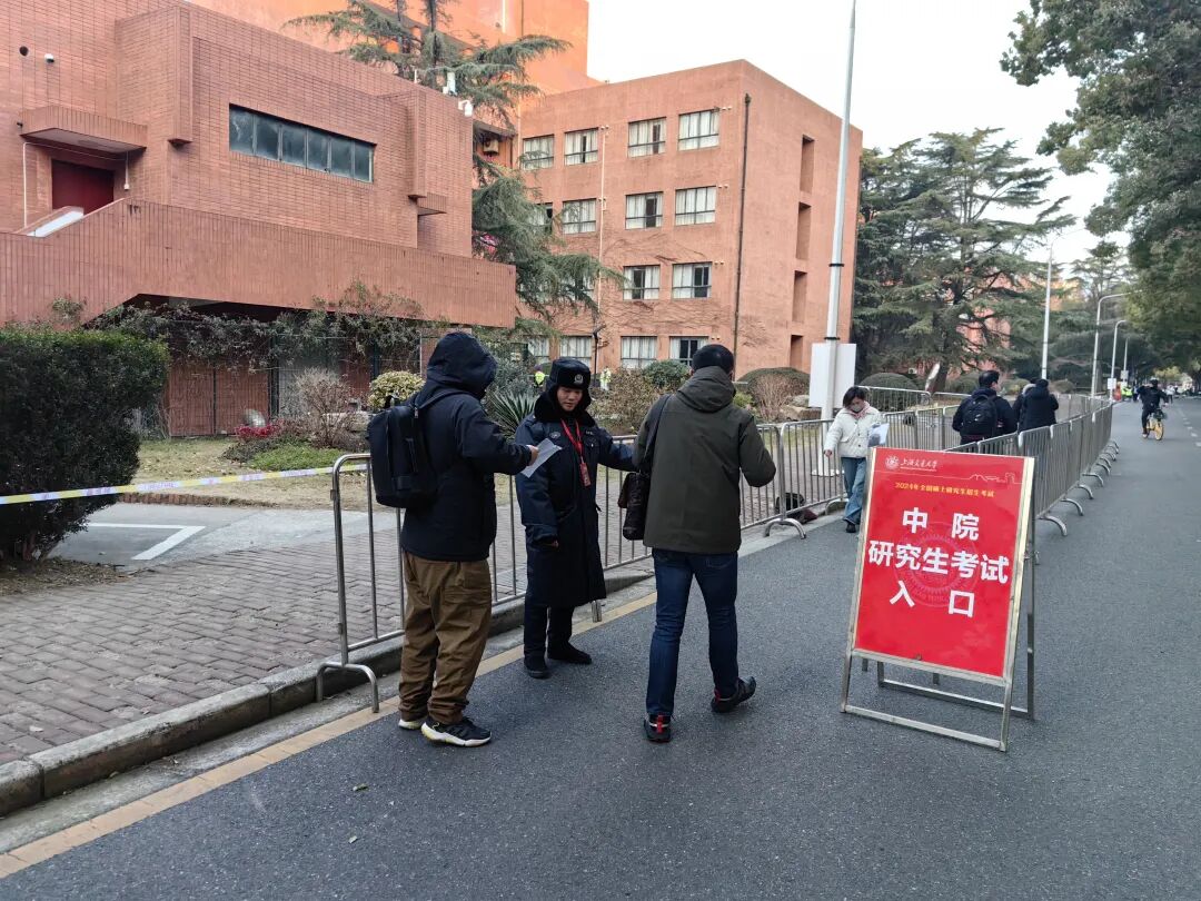 华东政法大学考点制作了明晰的校园指引展板,免费提供手机存放柜给考生们集中存放。明法楼考场屏蔽仪全覆盖,在入口处特别增加了安检门,加快考生进场速度。为避免考生在严寒天气中等待,考点比常规时间提前半小时开放,充分利用学校现有资源,安排体育馆、食堂等场所作为候考区域,积极为考生提供热水、研考套餐等温馨服务。