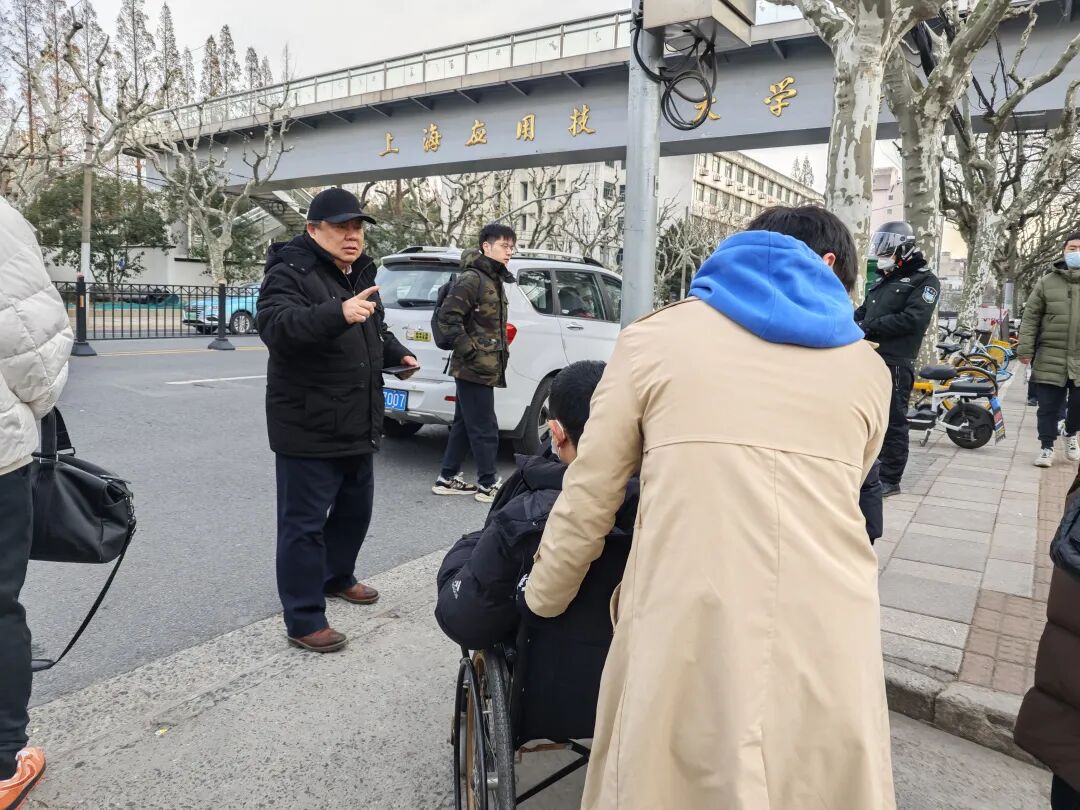 考前,上海应用技术大学接到一位考生电话,因腿部骨折,问是否能正常参加考试。考务工作老师非常重视,为这位考生做了专门安排。指派对接工作人员,并特别布置考场座位。考试当天,工作人员在校门口等候,接应考生。进校后,由志愿者老师全程送到考场,并准许其将药物带入考场。由于考生右小腿做了固定,不能弯曲,考场座位还专门做好了精心调整,方便其腿部伸展。