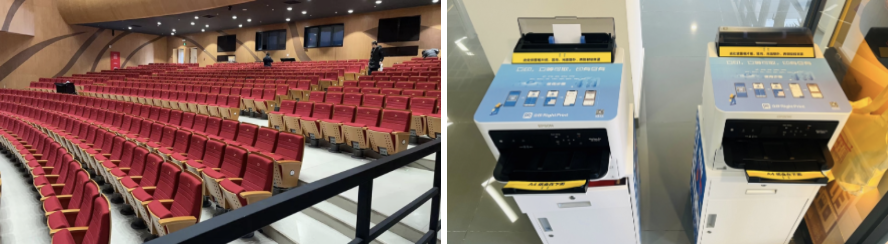 为了防止考生出现准考证遗失或者损坏未能进考场的情形,上海海事大学特别在考场附近的供应链大楼大厅前台设置2台打印机,免费为考生补打准考证。设置2400个手机存放柜,志愿者也会在旁协助存放。学校特别设置了避雨区并准备了口罩等物资放置在考场入口及各个考务室,根据考生需要发放。