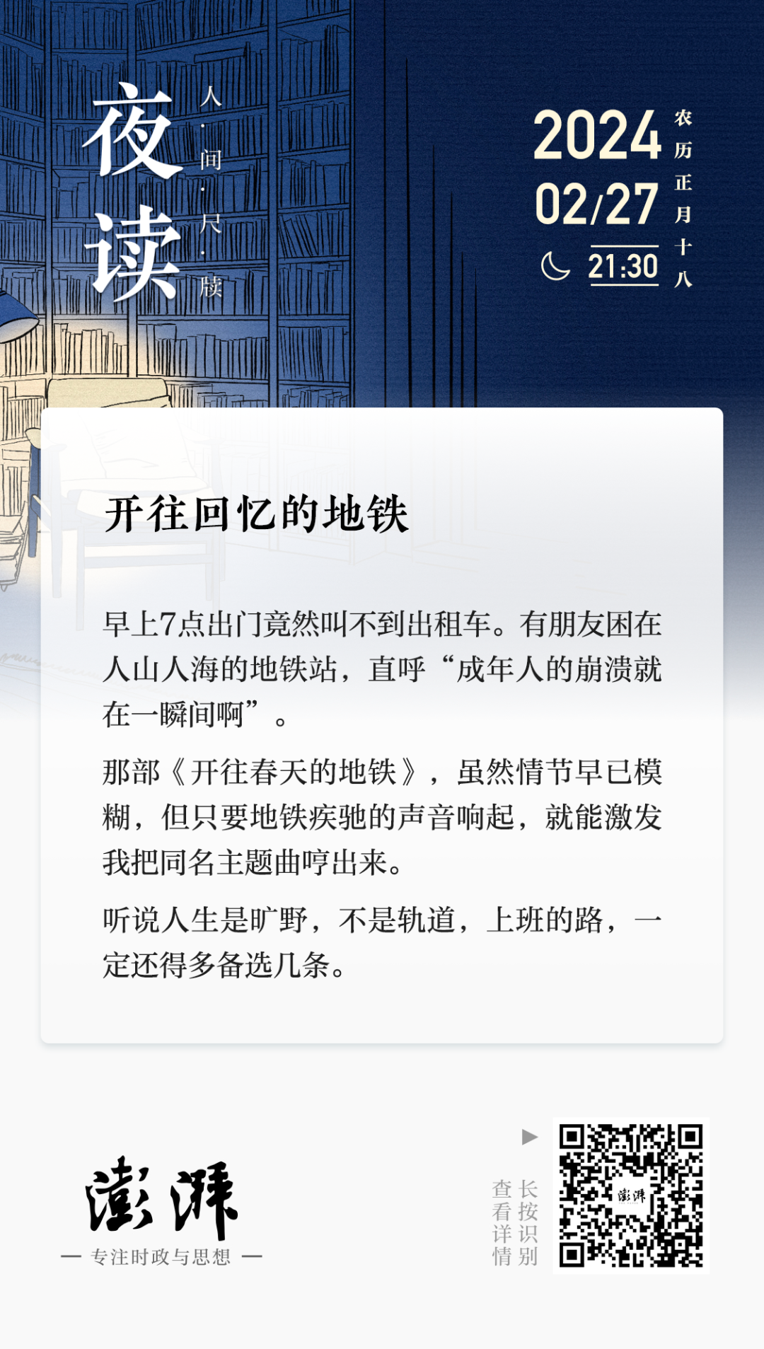 因受天气等突发因素影响,早上有两条地铁线路的部分区段停止运营了。难怪打车如此艰难。反应稍慢半拍就会进退维谷,有朋友困在人山人海的地铁站,直呼“成年人的崩溃就在一瞬间啊”。