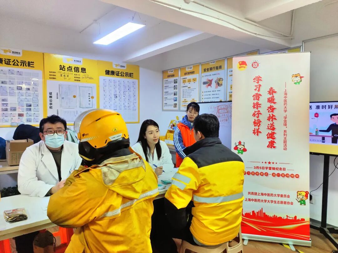 上海中医药大学团委开展“学习雷锋好榜样,春暖杏林送健康”主题活动,为外卖小哥送健康 ![]()