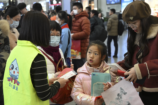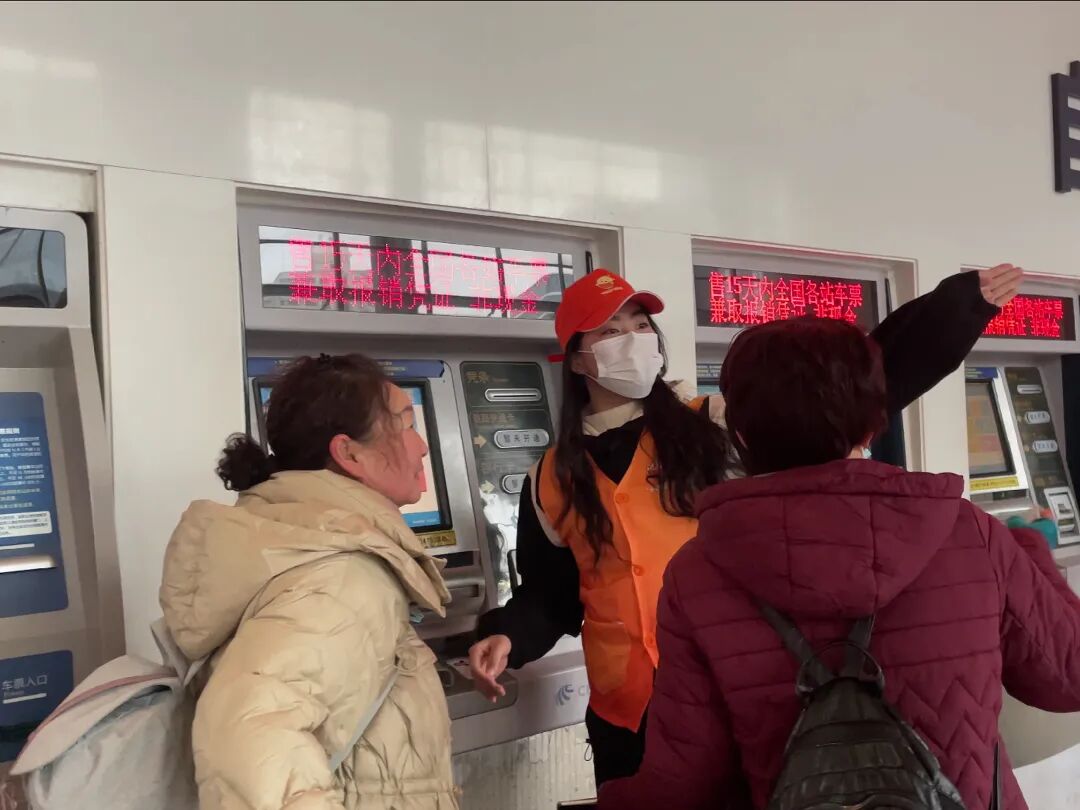 上海交通大学师生志愿者在春运现场开展志愿服务