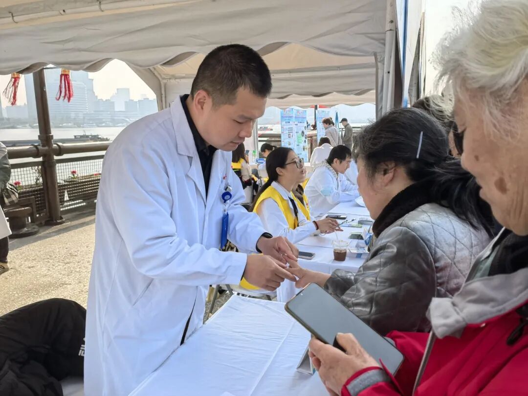 复旦大学上海医学院博士生医疗服务团在奉贤组织了“博学笃行护健康,送医为民柘林行”健康义诊。15名来自呼吸内科、神经内科、皮肤科、心内科等13科室的专家和博士生志愿者在奉贤区柘林镇邻里中心开展志愿服务,服务覆盖健康咨询、检查报告解读等,服务400人次。队员们发挥医学专业特长,用行动践行着为“为人群服务”的复旦上医精神。