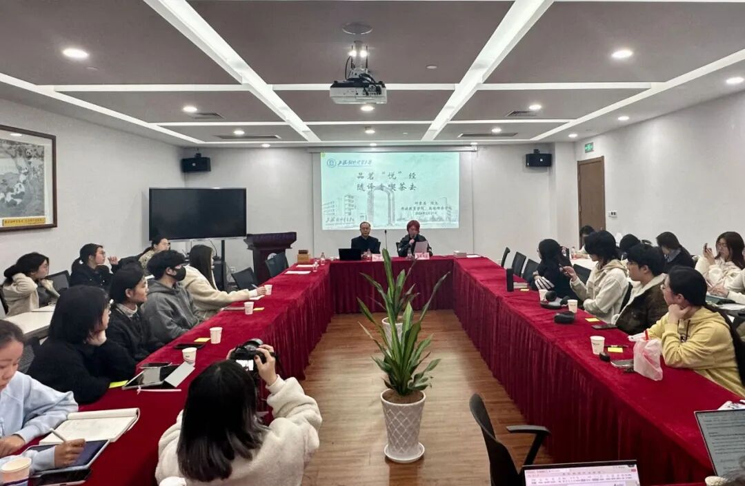讲座中,主讲人上海对外经贸大学开放教育学院院长邱贵溪由浅及深为同学们讲述了有关茶叶的品种、分类、点茶技艺等基础知识,同时延伸了茶与中国传统文化的渊源,古今名人与茶的故事等内容。