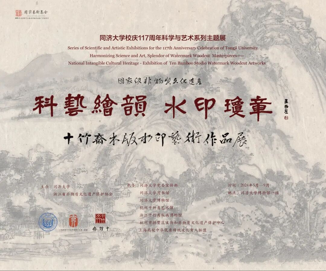 为庆祝同济大学建校117周年,同济大学博物馆即将在5月下旬举办科艺绘韵 水印琼章——国家级非物质文化遗产十竹斋木版水印艺术作品展。展览将通过“科艺同源、木刻绘韵、匠心传承、水印琼章、东学西渐、匠心传承”6个篇章,全面呈现木版水印的历史渊源、技艺特点和文化内涵,带领广大师生和社会游客沉浸式体会木版水印的技艺和魅力。