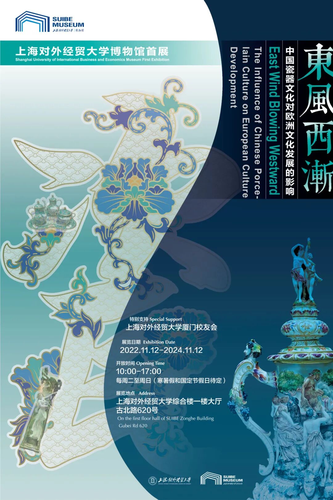 即日起至11月12日,东风西渐——中国瓷器文化对欧洲文化发展的影响展在上海对外经贸大学古北校区举办。