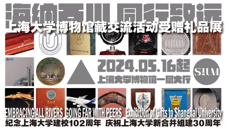 5月16日起,上海大学(宝山区南陈路333号)博物馆一楼大厅举办海纳百川 同行致远:上海大学博物馆藏交流活动受赠礼品展。