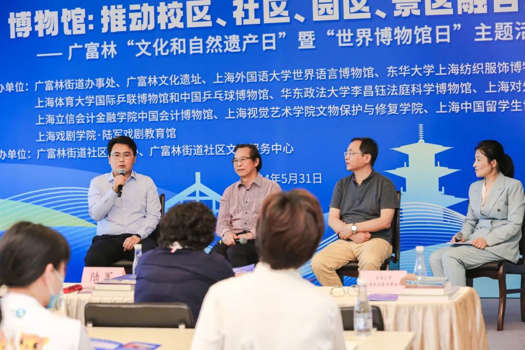 就如何整合联盟资源,拉近博物馆与公众的距离,拓宽文化触达观众的途径,陆军、陈皇以及上外世界语言博物馆副馆长孔令涛围绕博物馆的社区教育方向以及联盟资源联动的可持续性发展主题进行了深入探讨,来自广富林街道居民区的党支部书记顾亚香、顾文娟结合社区工作分别谈了感想。
