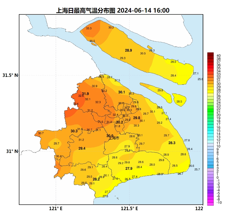 今天上午,我国华北、华南、东南雨水涟涟,广东等地区出现暴雨。午后降水逐渐分散,全国雷达回波犹如天女散花,虽然范围不大,但局地强对流特征明显。上海今天规避了散碎的雨区,除了极个别的站点出现弱降水之外,大部分地区阳光时隐时现,天气稳定,各区最高气温定格在28~31度,体感有些闷热。
