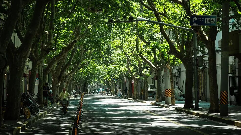 上海的市中心有很多法国梧桐树。一到夏天,那些宽大的树冠就像张开的伞盖,遮挡了炙热而耀眼的阳光,微风透过树叶的缝隙,为城市送来一丝清凉。