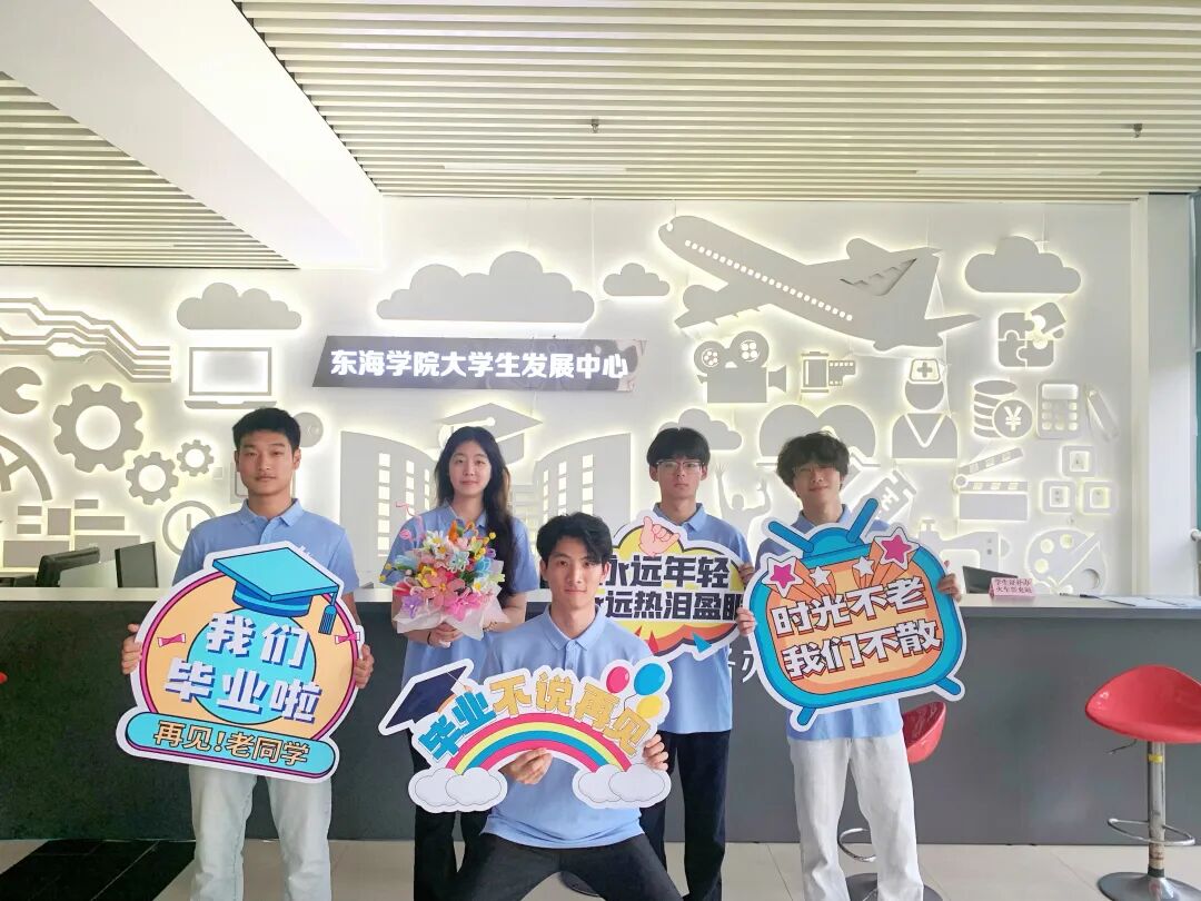 上海东海职业技术学院毕业生们在学校学生活动中心趣味合影,手牌上,都是心中的不舍上海济光职业技术学院毕业生在学校宿舍楼前合影,大学生活的点滴,已成为人生最重要的回忆