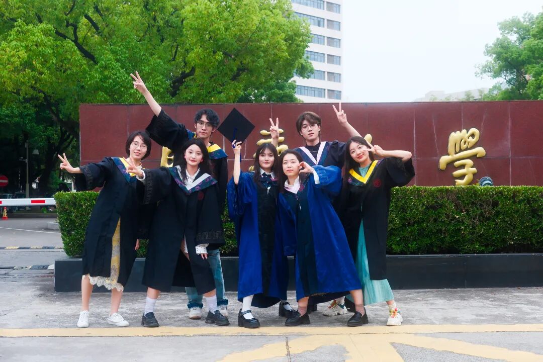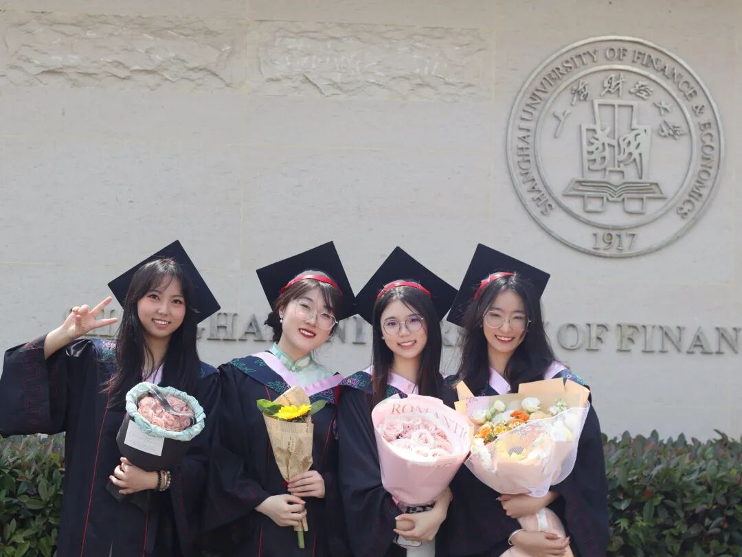 上海财经大学毕业生们在校门口合影,记录下毕业前夕花样的青春