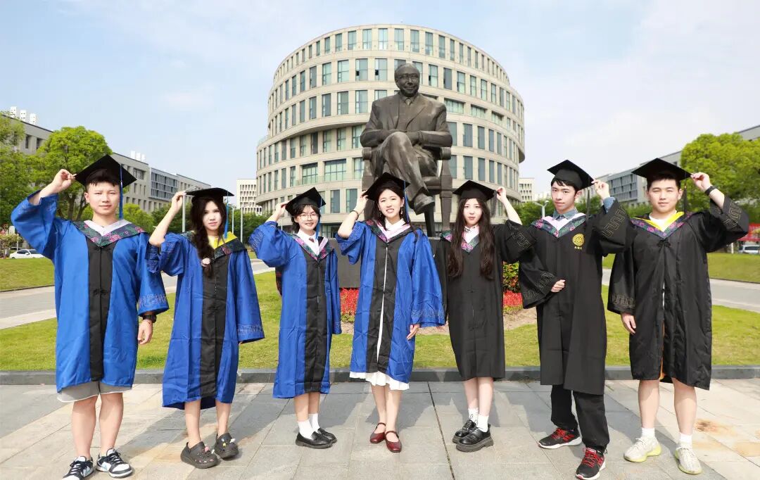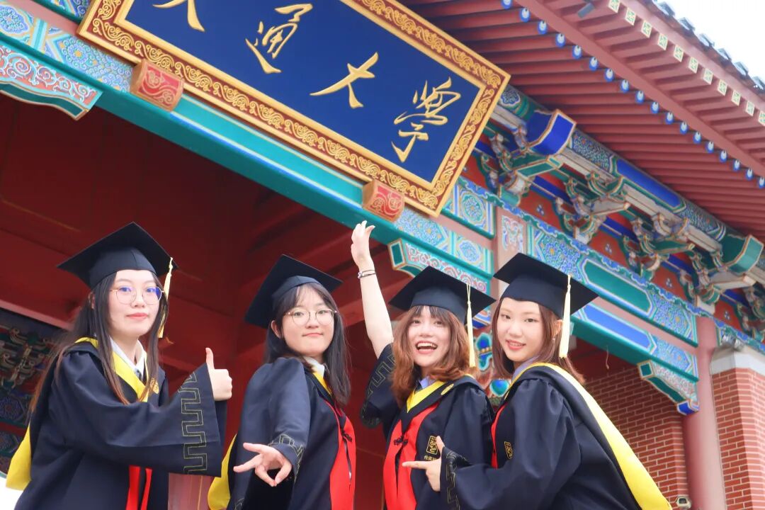 上海电力大学毕业生们站在学校体育场最高处,与过去作别,携手向未来上海大学毕业生在钱伟长图书馆前留影,立报国之志,逐未来之梦![]()