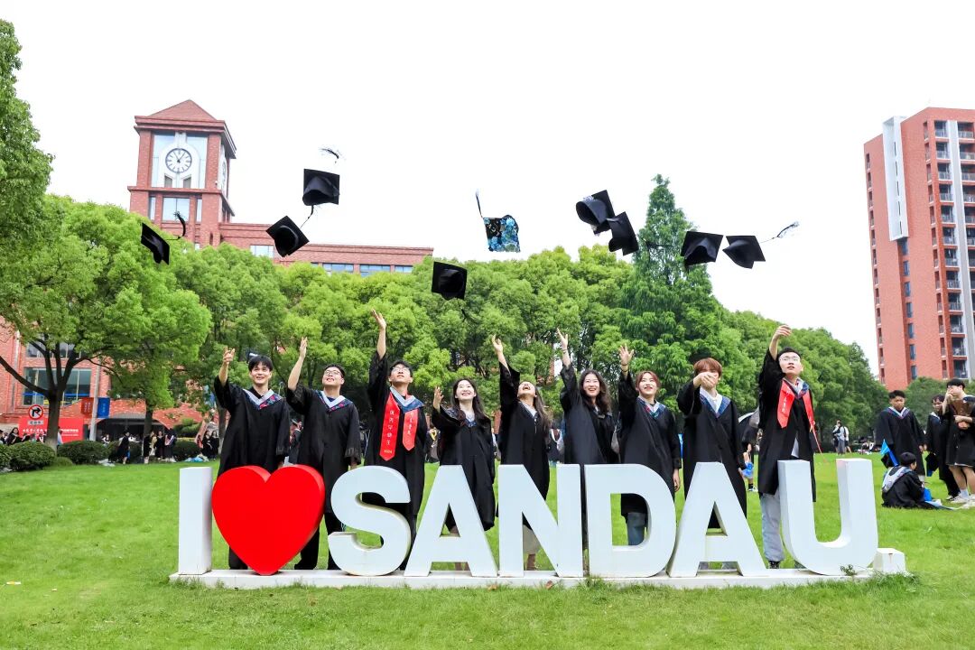 上海杉达学院毕业生们在学校钟楼前合影,高扬的是青春,放飞的是梦想
