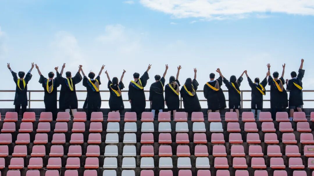 上海中侨职业技术大学操场上,毕业生们挥别过往,许愿“顶峰相见”