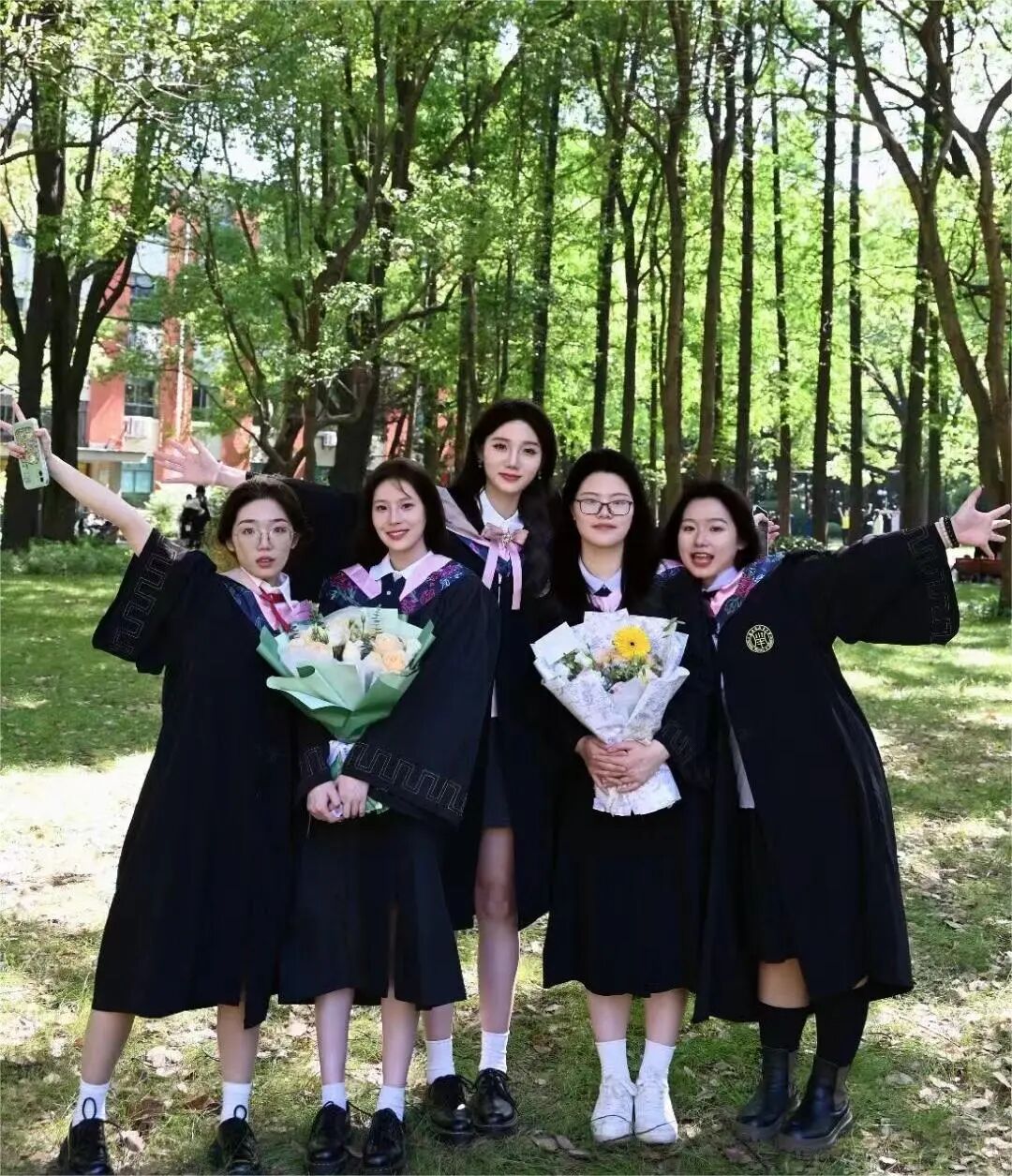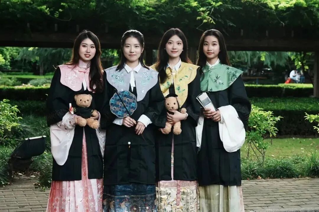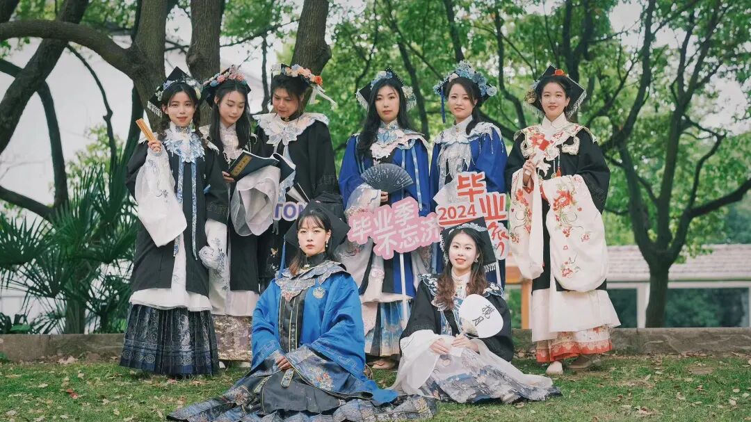 东华大学毕业生们身着国风学士服记录毕业时刻,笔墨丹青,绘就未来,风华正茂,共赴新程