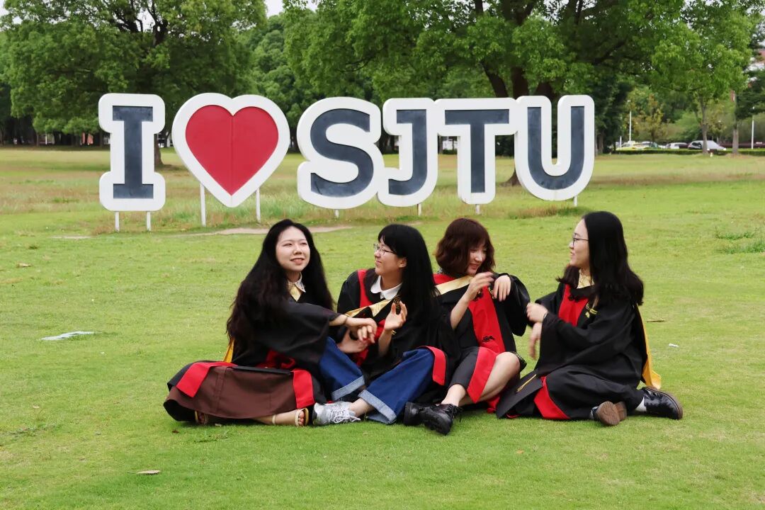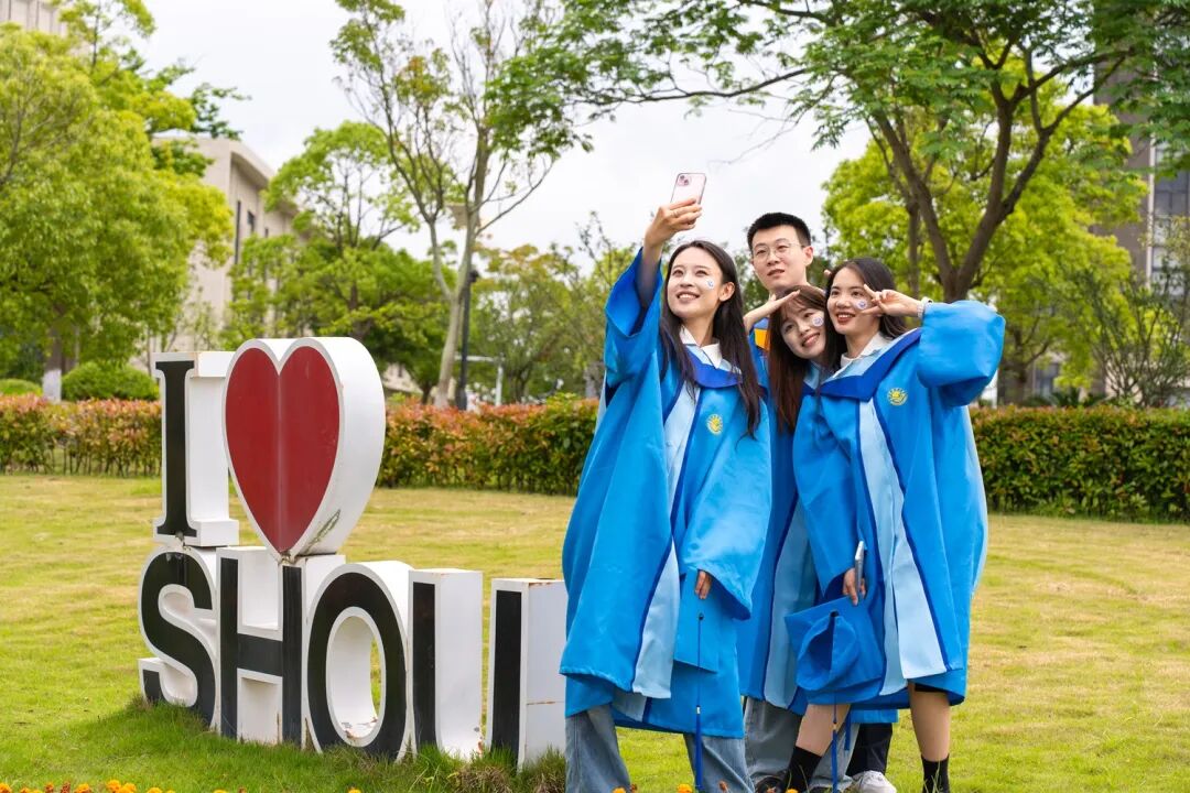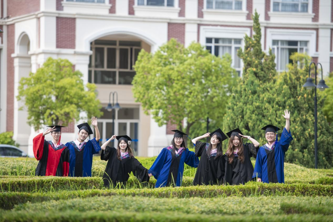 上海应用技术大学毕业生们在学校大草坪上快乐合照,临别前,记录并珍藏与母校的夏日“同框”