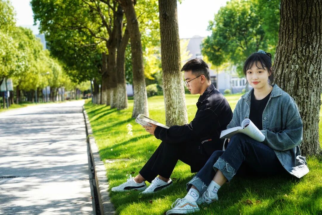 上海电子信息职业技术学院毕业生们在草坪上留下阅读合影,读书,是大学时光最美的注脚