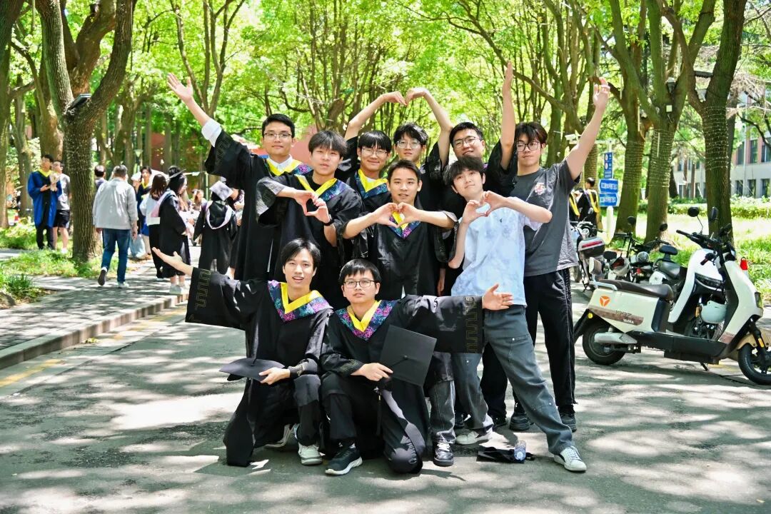 上海理工大学的毕业生们在学校湛恩大道上“比个心”,四年友谊,一生兄弟