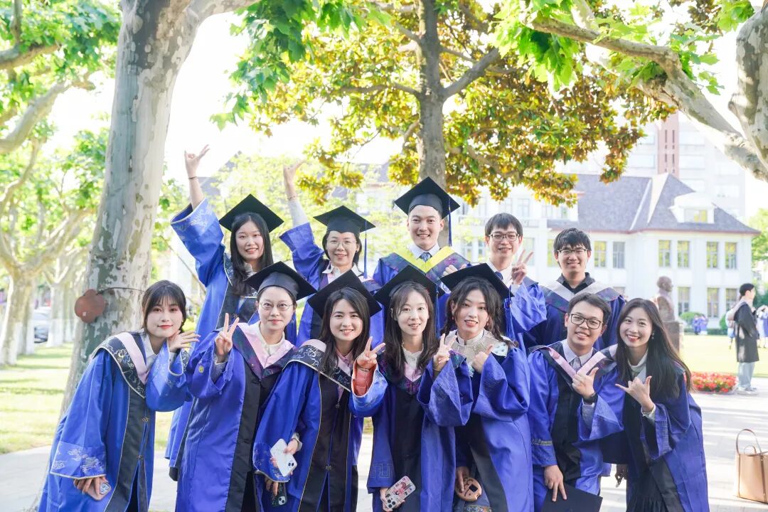 复旦大学毕业生们身着学位服合影留念,他们将从这里各奔东西,追寻自己的青春理想