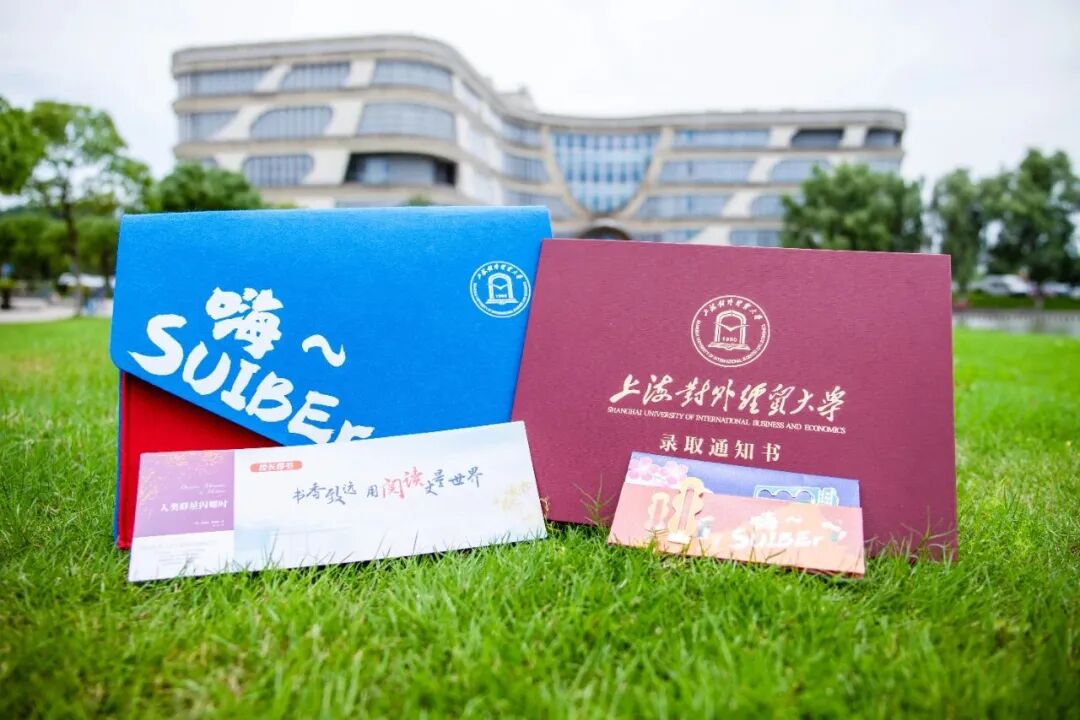 2024年录取通知书礼包整体定制成蓝红撞色毛毡包,新潮且学院感十足。一声“嗨~SUIBEr”,亲切、欣喜又充满热情。礼包内2枚定制金属书签,以校园标志性建筑为基础,与立式折卡相映成趣,描绘了校园春意盎然和爽朗金秋的别致景色,设计灵感来自“上经贸大第二届本科新生礼物设计大赛”中获奖学生作品,学长学姐们用特有的方式表达了对萌新们的欢迎。今年校长将以电子书的形式继续向每一位新生赠书。另外,还有小小惊喜藏在新生礼包内。录取通知书以热烈而庄重的深红色为主色,横版对开,一幅定制插画让人眼前一亮,校园美景跃然纸上,如若身临其境;配色取用高明度中纯调红韵,辅色青绿,缀色黄蓝,缤纷灿烂,年轻朝气。插画下方内置校长寄语卡片,饱含了校长对2024级新生们的诚挚欢迎和殷切期望。