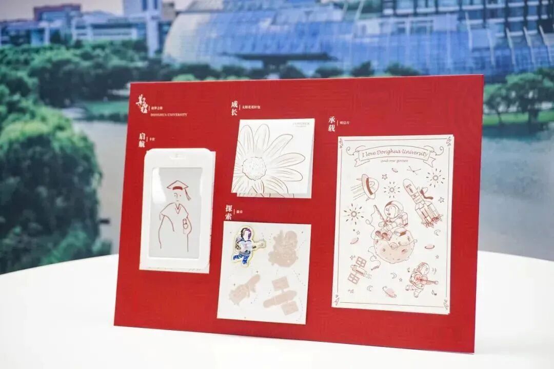 打开东华大学寄来的快递包装,首先映入眼帘的是一个毛毡包样式的外包装,这是由东华大学学生设计团队微醺集设计制作的,锦缎红色的有机羊毛毡包身配合东华大学logo磁扣黄铜金属质感,“期程”二字凹凸的深浅赋予信封独特的纹理与质感,打开毛毡包,便是同学们心心念念的录取通知书。随录取通知书一同寄出的,还有学校为新生精心准备的见面礼,包括卡套、太阳花花籽包、徽章、明信片,其中寓意等待大家慢慢探索。